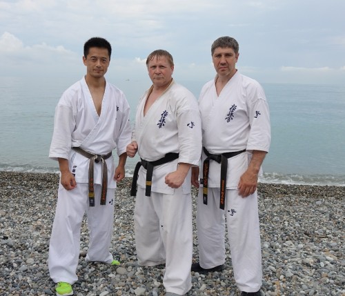 Тренировочные дни начались с 16 июня. Проведение общей тренировки планировалось на пляже у моря в шесть часов утра, но первый тренировочный день был омрачен дождливой погодой, и первая тренировка из-за проливного дождя проводилась в зале. Но вскоре солнце вышло, тучи разошлись и все пошло своим чередом. В каждый тренировочный день проводилось по две тренировки. Утренняя в шесть часов на пляже и вечерняя тренировка по группам в зале. А свободное время между тренировками можно было посвятить отдыху, посещению аквапарка или экскурсиям. Тренировки проводились под руководством шихана В.Белова и шихана Шин Ито (Япония)- чемпиона в среднем весе Всеяпонского чемпионата. Ито Шин имеет в Японии свой доджо, в котом тренируются более трехсот учеников. Профессионально Ито Шин начал заниматься киокушином в зрелом возрасте, в настоящее время ему исполнилось 42 года. Первые шаги в каратэ он сделал в шесть лет и начинал заниматься акинавским каратэ Годзю-рю. Сразу скажу, что тренировки под его руководством увлекали всех с самого начала и до конца тренировочного процесса, интерес к его тренировкам не ослабевал. Он выстраивал тренировки так, что уже на начальном этапе появлялось понимание исполняемой техники и формирование технических навыков, он добивался от всех конечного результата и полных усилий в тренировке. Не продолжительное время он уделял кихону (базовой технике), а большую часть тренировки он посвящал наработке санбон-кумитэ, поэтапному освоению свободного боя, базовому спаррингу, а также множеству упражнений на развитие технических навыков. 17 июня, подьем состоялся в пять часов утра, а в шесть часов уже все стояли на построении и началась общая утренняя тренировка на пляже. После двухчасовой утренней тренировки долгожданный завтрак, хочу отметить, что кормили нас великолепно в ресторане "Парадиз" по принципу шведского стола. Первые дни пребывания на сборах было тяжеловато, поскольку очень хотелось все попробовать и много. Но напряженные тренировки сделали свое. Утром, после тренировки перед завтраком есть небольшое время, чтобы окунуться в море, а после завтрака немного поспать, но самый сладкий сон это время после обеда, когда невозможно удержаться и завалится на мягкий диван перед вечерней тренировкой. Но 17 июня после завтрака пошел дождь и организаторам сборов пришлось поменять часы тренировок, поэтому пришлось поспать недолго, в 15 часов 30 мин. уже приступили к тренировке. К вечеру опять пошел дождь, просто невероятный ливень, в номерах сражу стало прохладно и неуютно. Утром следующего дня тренировку Ито Шин начал с тысячи ударов. Отработав и выполнив тысячу ударов руками, мы приступили к выполнению тысячу ударов ногами маэ-гери чудан. Выполнив триста ударов, понимаешь, что это не твой предел, но без лукавства необходимо сказать, что ноги потяжелели и стали намекать, что пора заканчивать, но ты продолжаешь выполнять удары, а после восьмисотого удара уже начинаешь бить сильнее. Завершив кихон и идо гейко, мы приступили к выполнению джюджи гата, проделав эти упражнения омотэ и ура, приступили к выполнению тэки ката соно ичи, ни и сан. Утро было солнечным, в шесть часов утра температура воздуха уже составляла 21 градус, поэтому после тренировки,обязательно утренний заплыв, море как раз в это время спокойное и чистое. Так мы провел